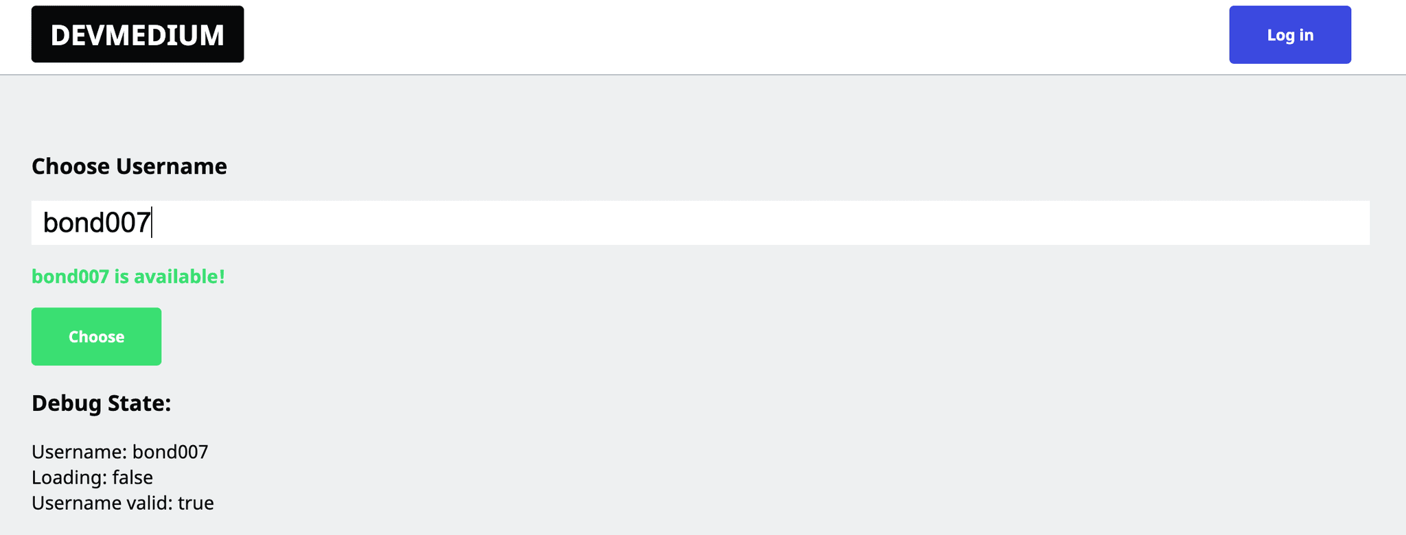 - When the user starts typing for a name, we use a technique called debounce. That is we wait for the user to stop typing (we can specify the waiting time) and then perform a read on the database to check if the username already exists in the